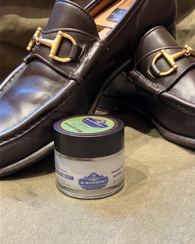 革の柔軟性と潤いを…第一段階として行いました。