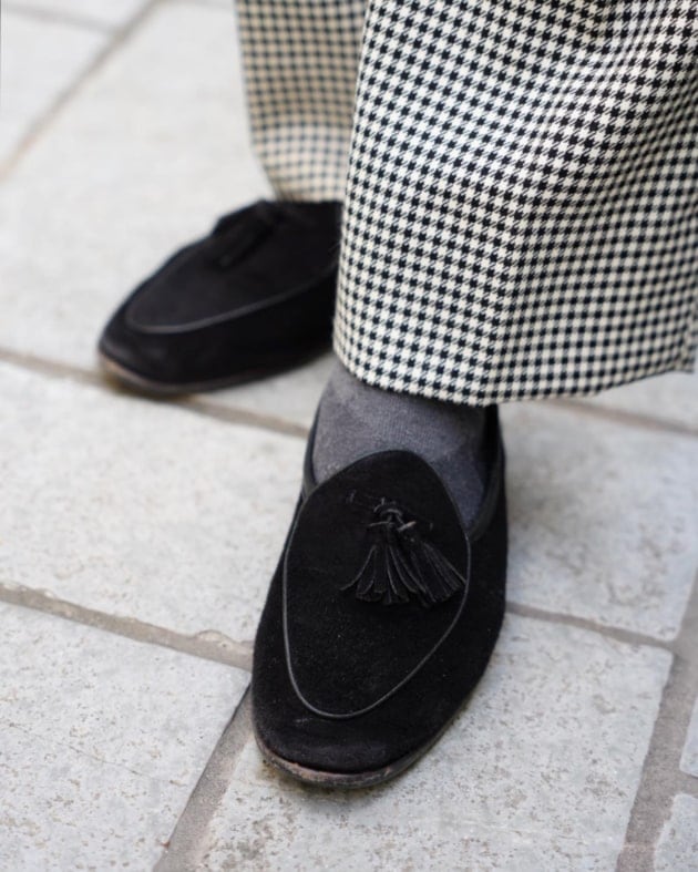 今のところ気になってるのはこの2色かなあと。こんな感じでデザートブーツに合わせて、チラッとスラックスから覗くぐらいのバランスで指したいですね。