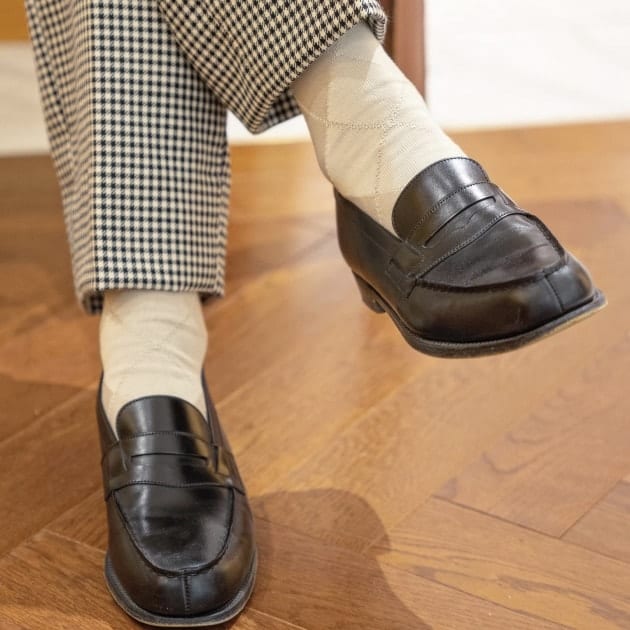 生地も厚すぎず、シューズのサイズ感にギリギリ影響を与えなそうなバランスなのもポイント。分厚いソックスは履けるシューズが限られてしまいますからね。