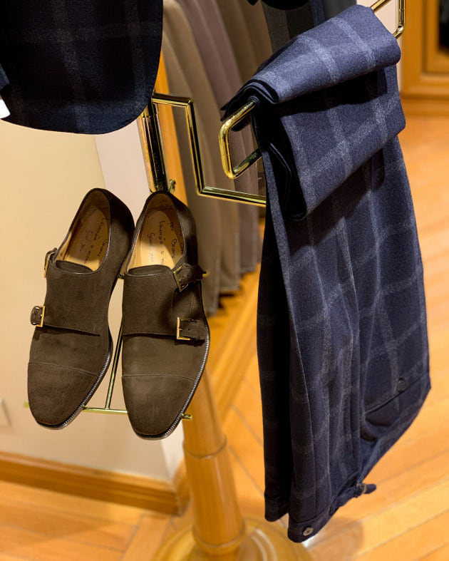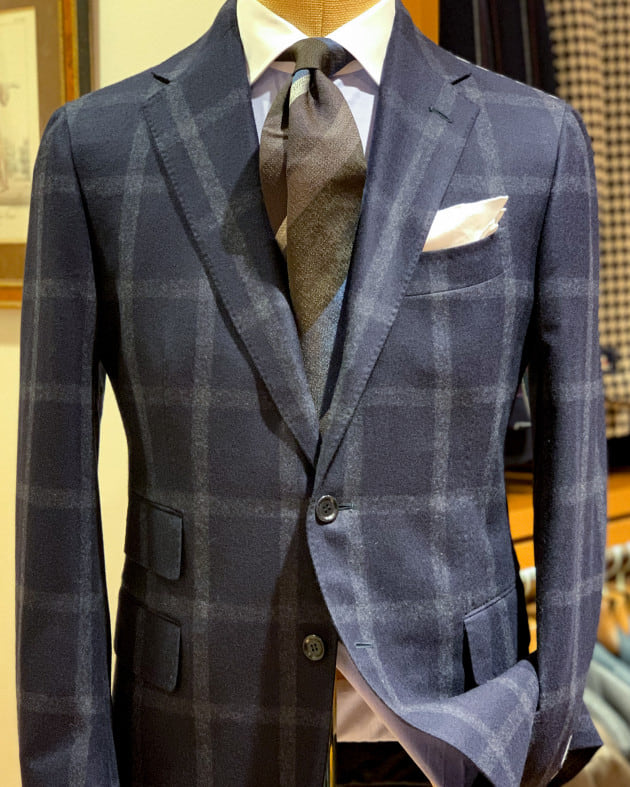 緑のウインドウペーンが春らしく楽しいフィレンツェ風ジャケット。