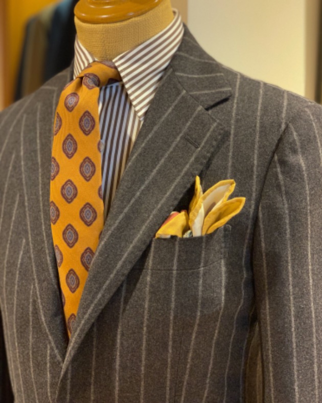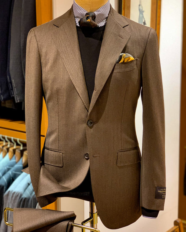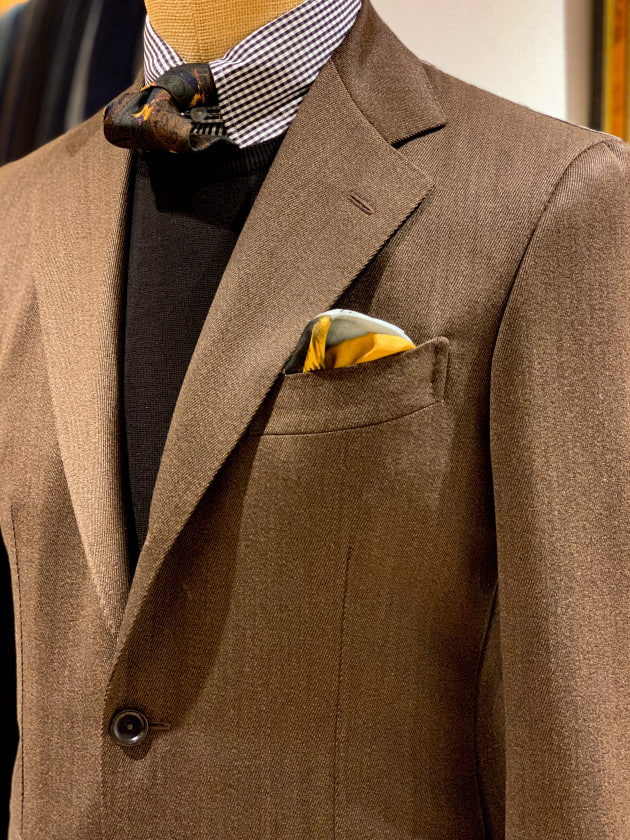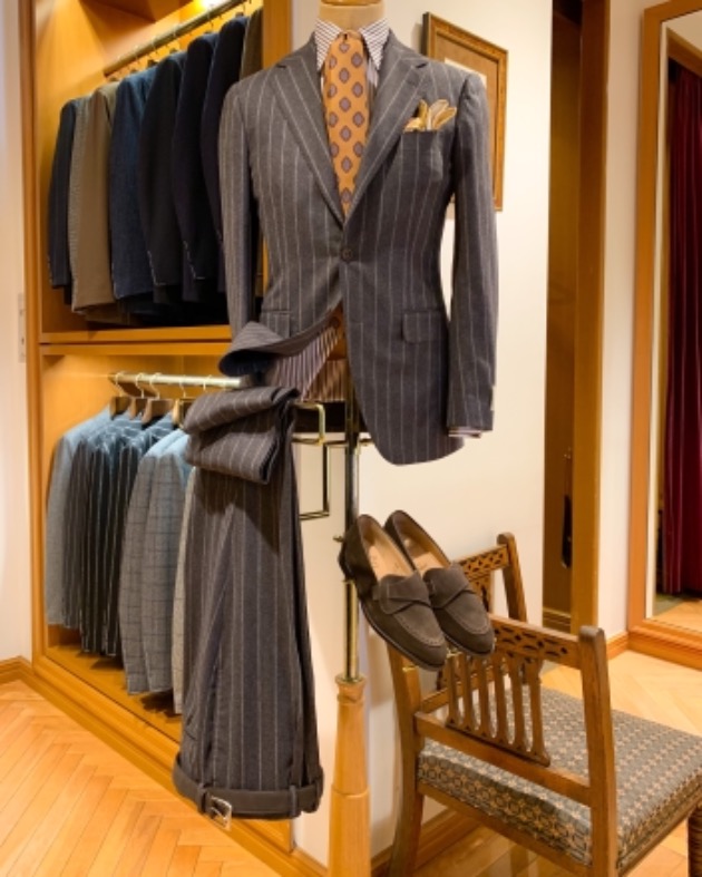 上品さを出したいときは、ライトグレーのサマーウールでどうぞ。