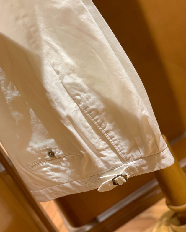 今回ご紹介する一本もまさにそのセッテピエゲ。通常の倍近い生地を贅沢に使用し、折り込まれた生地が芯の代わりとなるこの手法。