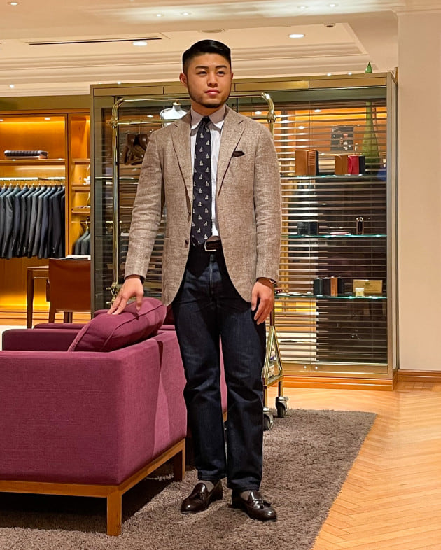ブレザーなどはもちろんですが、ほんのり堅さをほぐしたスーツスタイルにおすすめです。