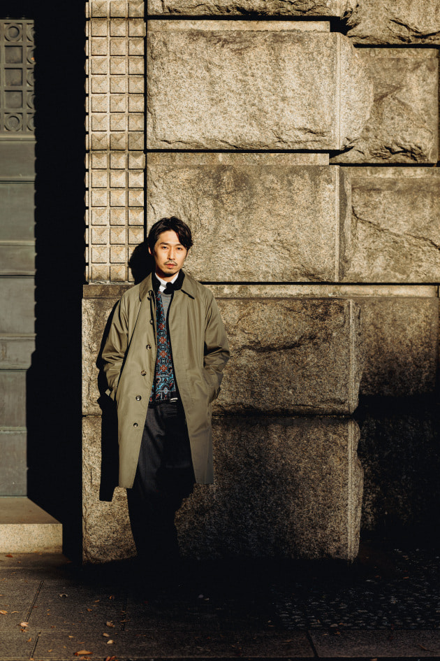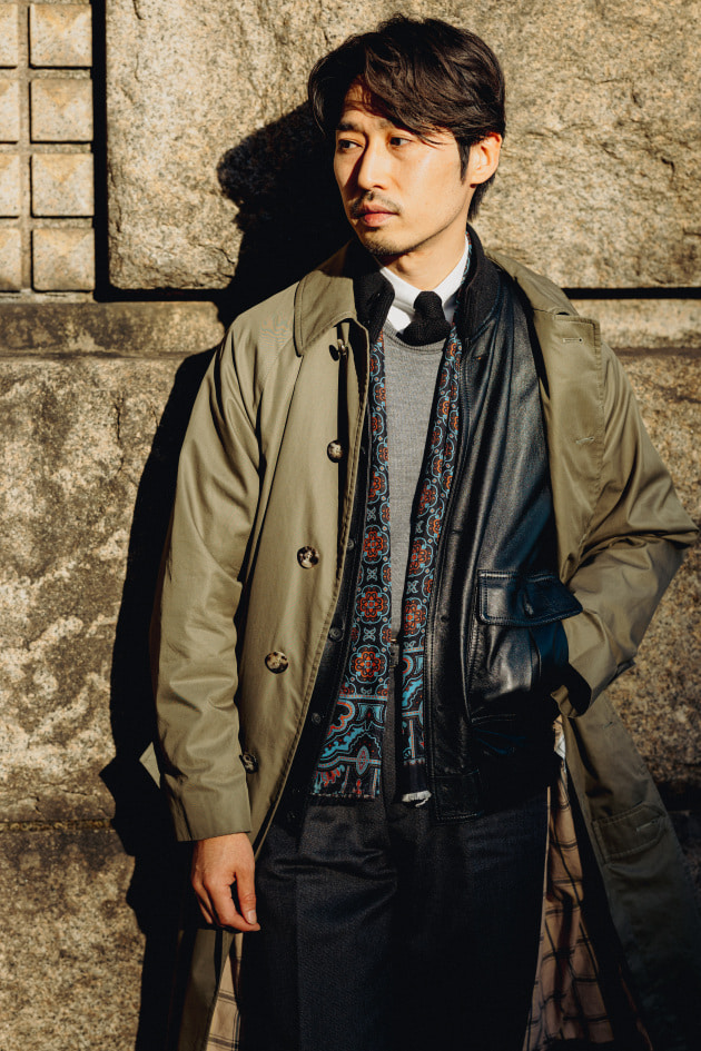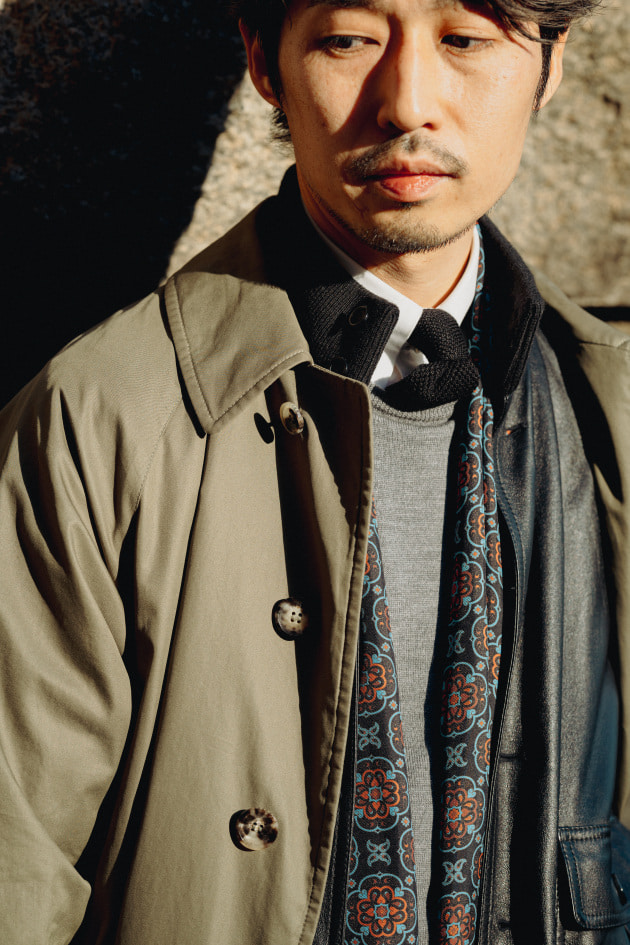 ジャケットを着ないぶん、ニットやシャツでカサ増し。
