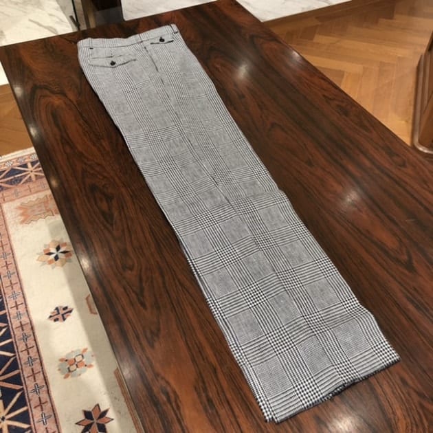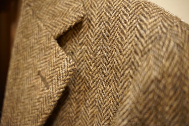 ファブリックは<FOX BROTHERS>よりFOX TWEEDです。グレーヘリンボーン大好きです。絶妙にイエローがかったグレーがとても格好良いです。グレーフランネルのトラウザーズにタートルネック、ブラックのショートブーツを合わせて都会的に合わせると素敵です。またデニムやミリタリーパンツを合わせてラギットに振っても良さそうです。もちろんチノを合わせてトラッドな装いも◎です。個人的にはブラックやベージュのキャバルリーツイルのパンツとコーディネートしたいです。