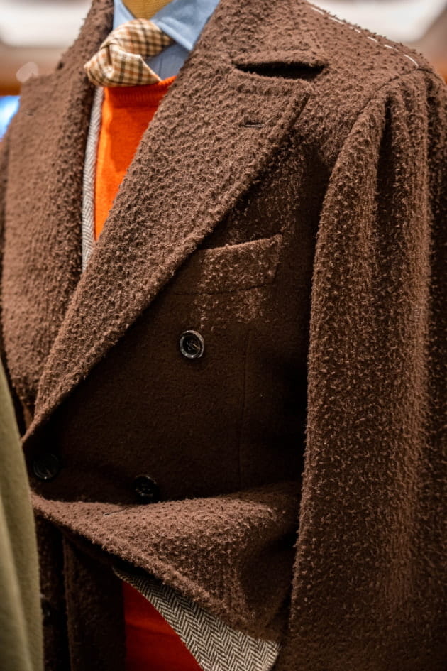 柔らかい仕立てに英国生地を乗せた重衣料を展開したいということから限定商材の企画に至りました。