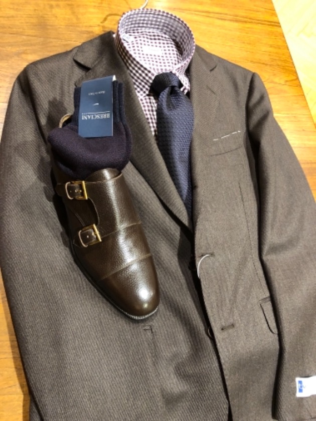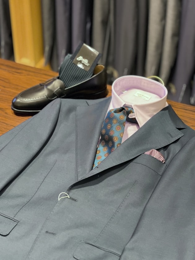 チーフはセオリー通りシャツの色合いに寄せて・・・