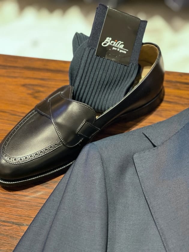 足下はビスポーク由来のバタフライローファーでエレガントに・・・