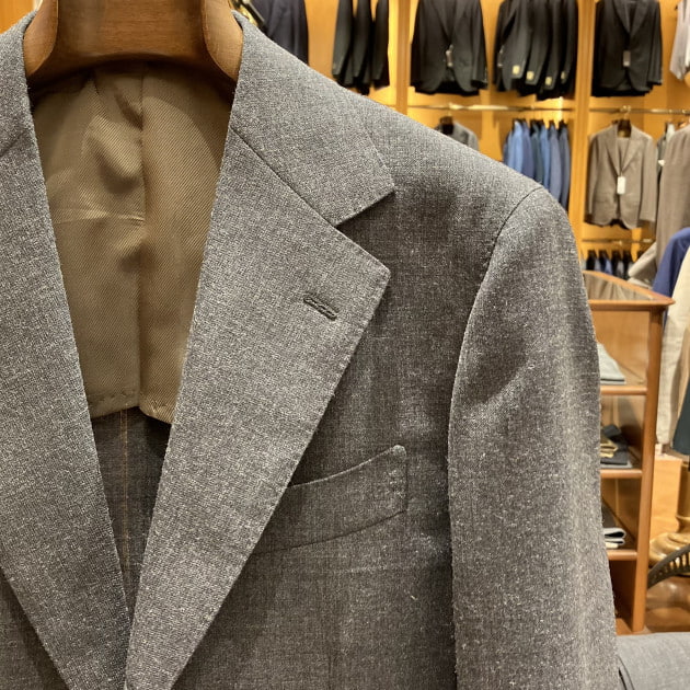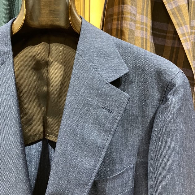 英国は<SPENCE BRYSON>のアイリッシュリネン100%の生地でオーダーしたダブルスーツ。