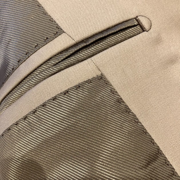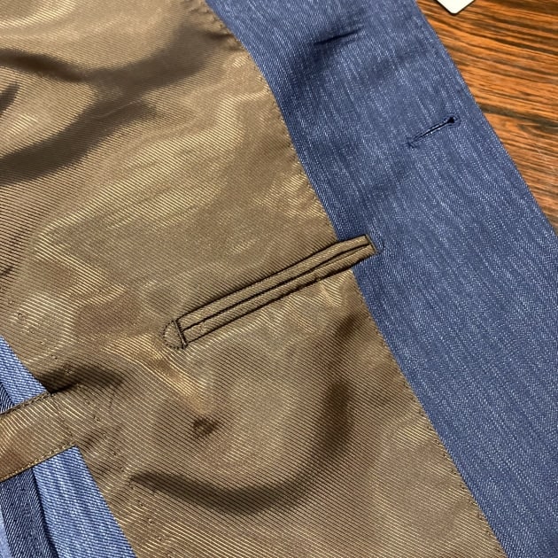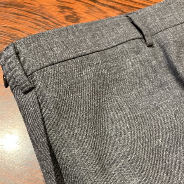 普段46のスーツを買うときはウエストを三方詰めしているので、オーダーで限界値まで絞って、そこからお直しに出すと通常のウエスト詰めでカバーできる、という感じです。