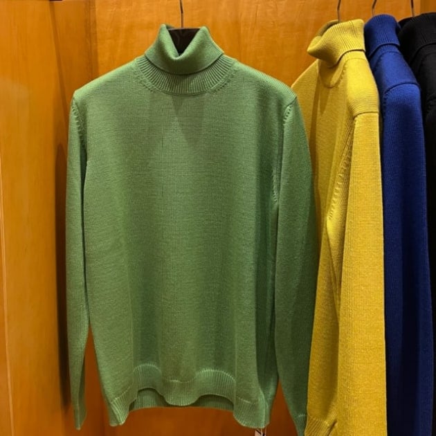 タートルネックニットとも相性が◎です。