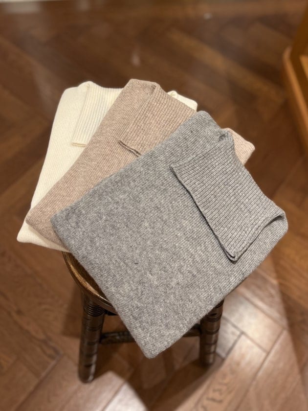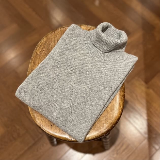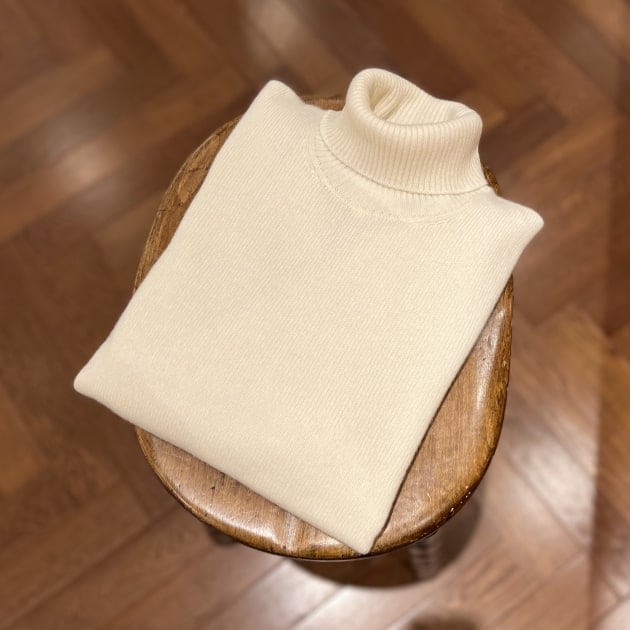 <DRUMOHR>8ゲージのタートルネックニットと合わせて色数絞ってシンプルに。
