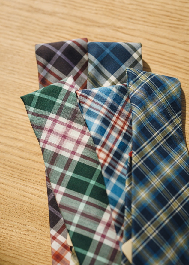 控えめなトーンで、タータンチェックながらどこか上品さを感じます。