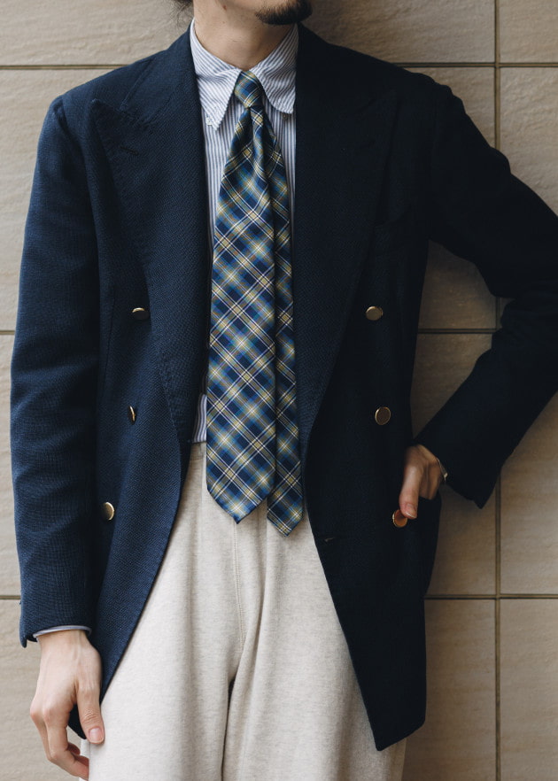 AD&C / ミックスファブリック トレピエゲ ガンクラブチェック ネクタイ