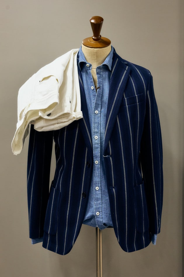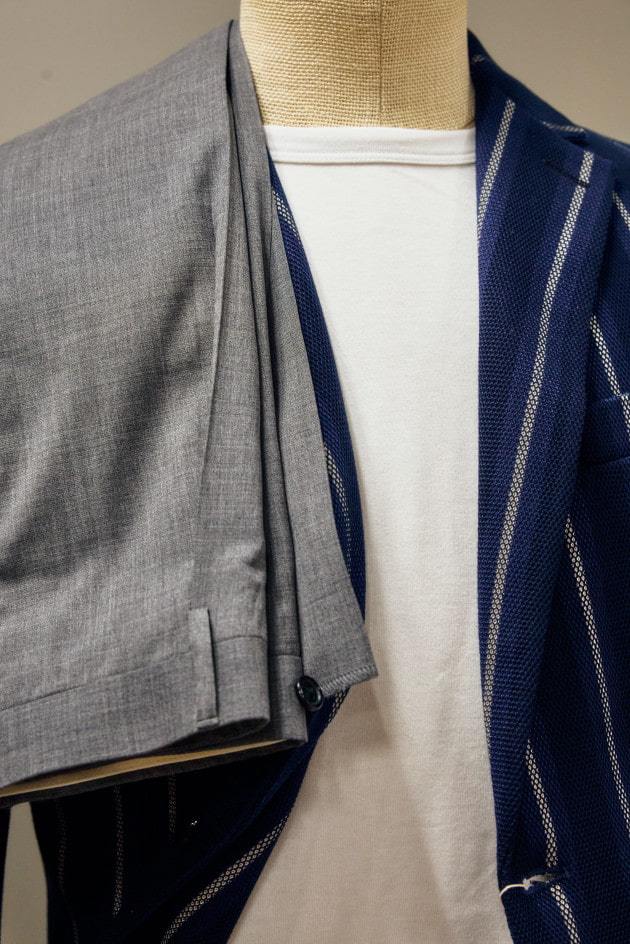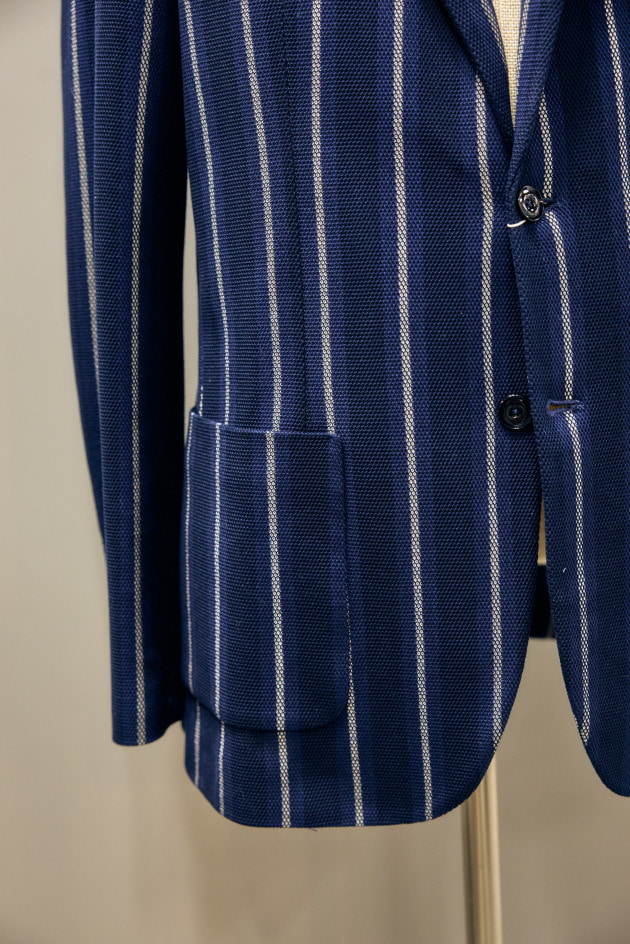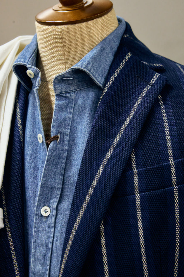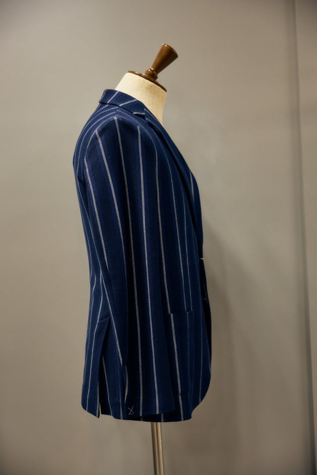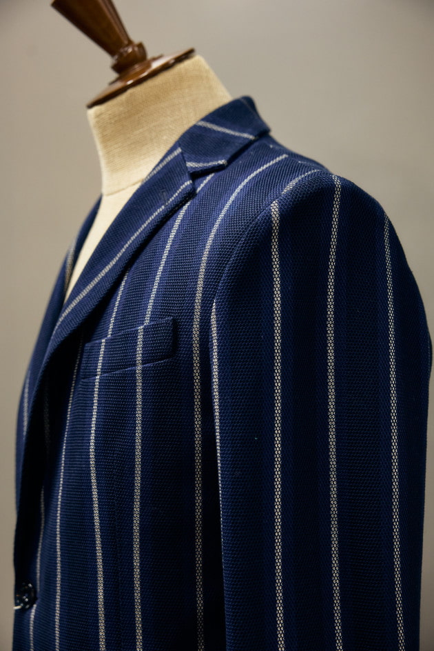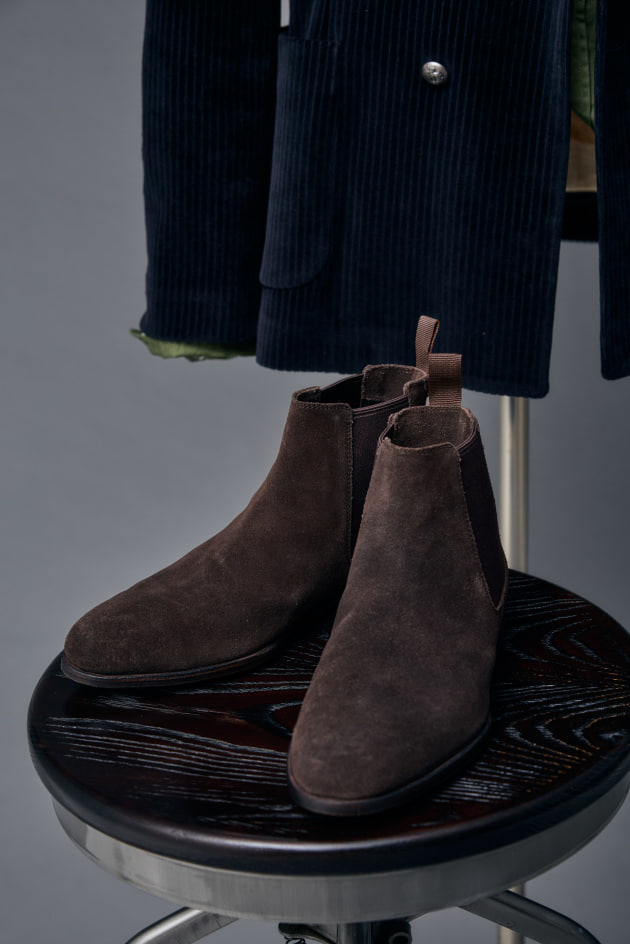 柔らかな素材を用いていながら、クラシックで立体的な仕立ては流石の一言です。長すぎない着丈の見せ方も現代的でこなれています。