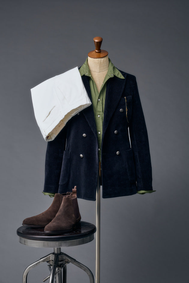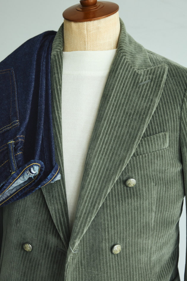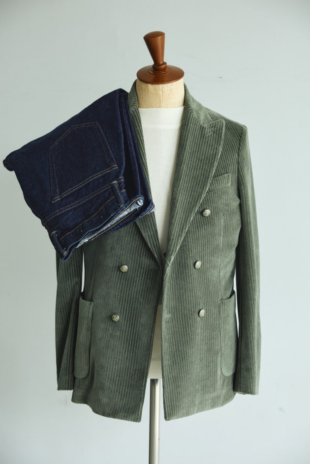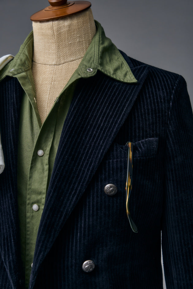今回ご紹介するのはこちらのコーデュロイのダブルブレスト。