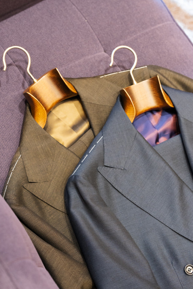 そんなダブルジャケットを組上に持つソリッドスーツが2色同時入荷です。
