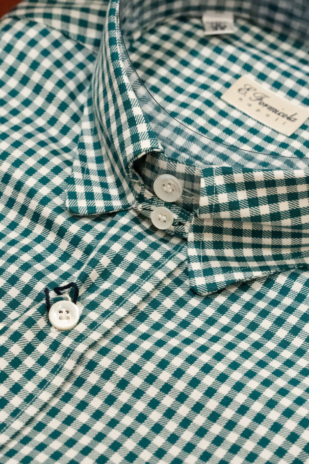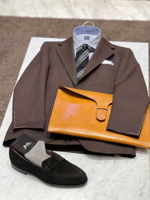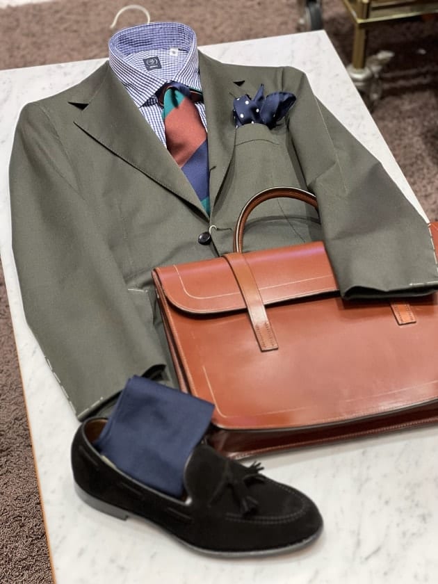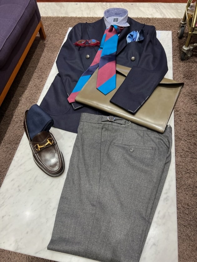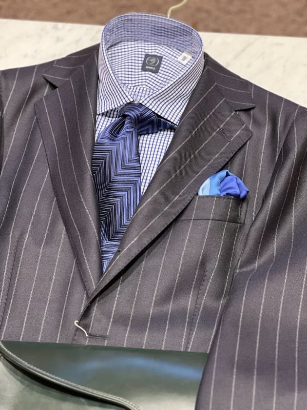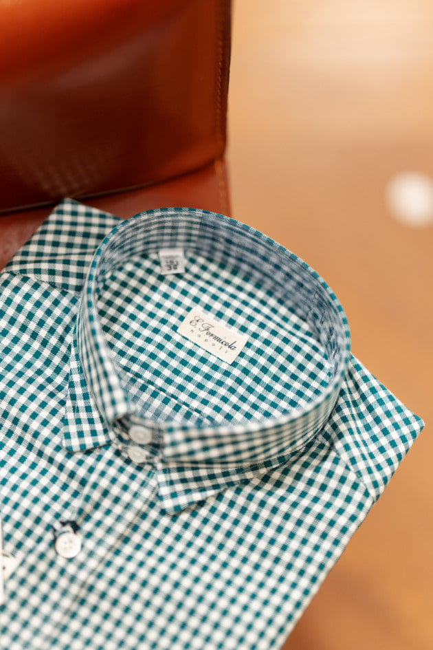 チェックのジャケットをオープンカラー