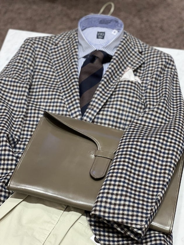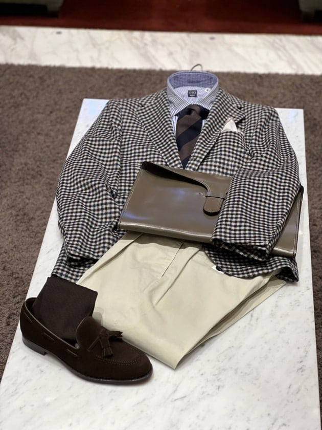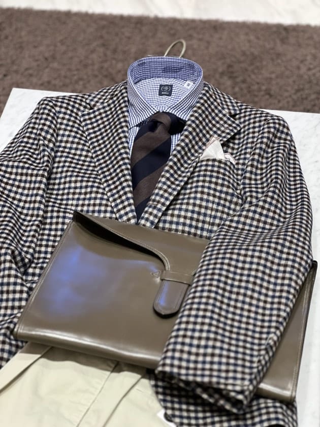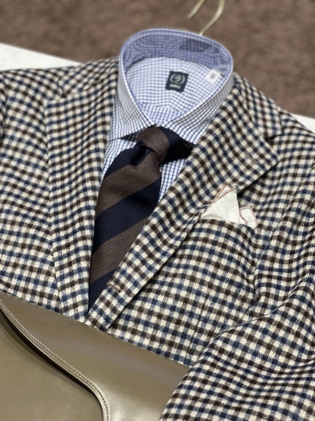 ガンクラブチェックのジャケットを