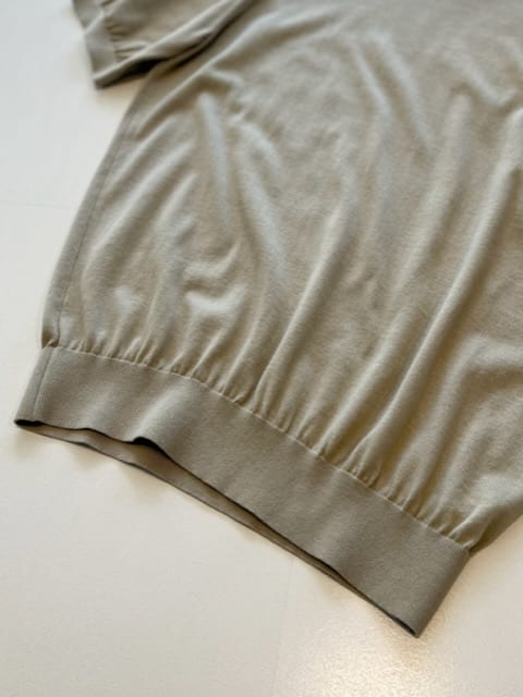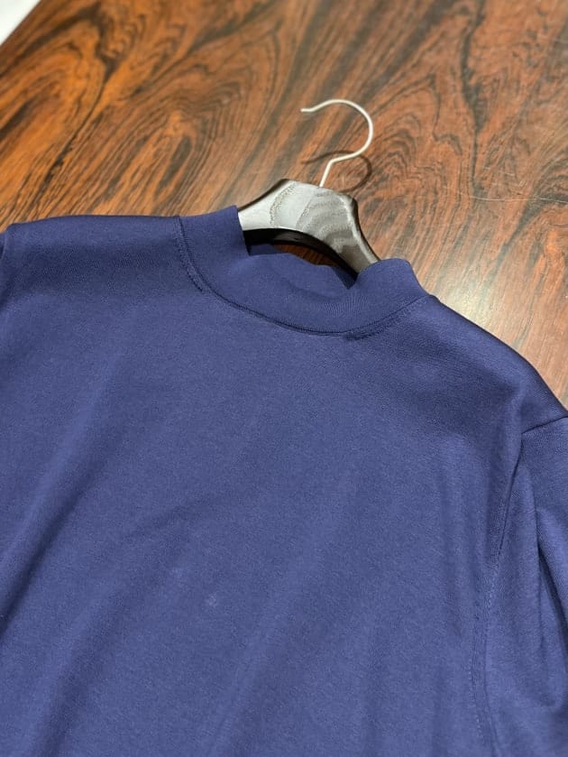 ジャケットのインナーに着用しても嵩張らない秀逸なパターン。