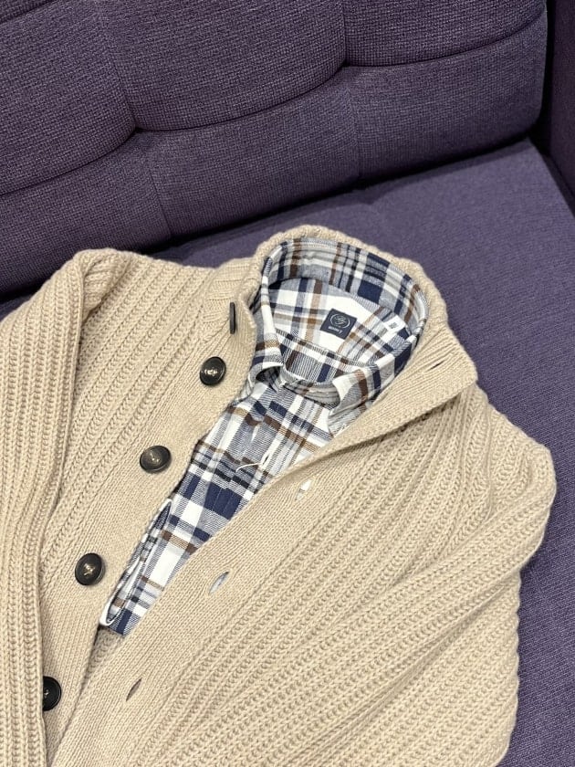 ポケットも、意外と最近流行ってるカーディガンには付いてないものが多いんですよね。