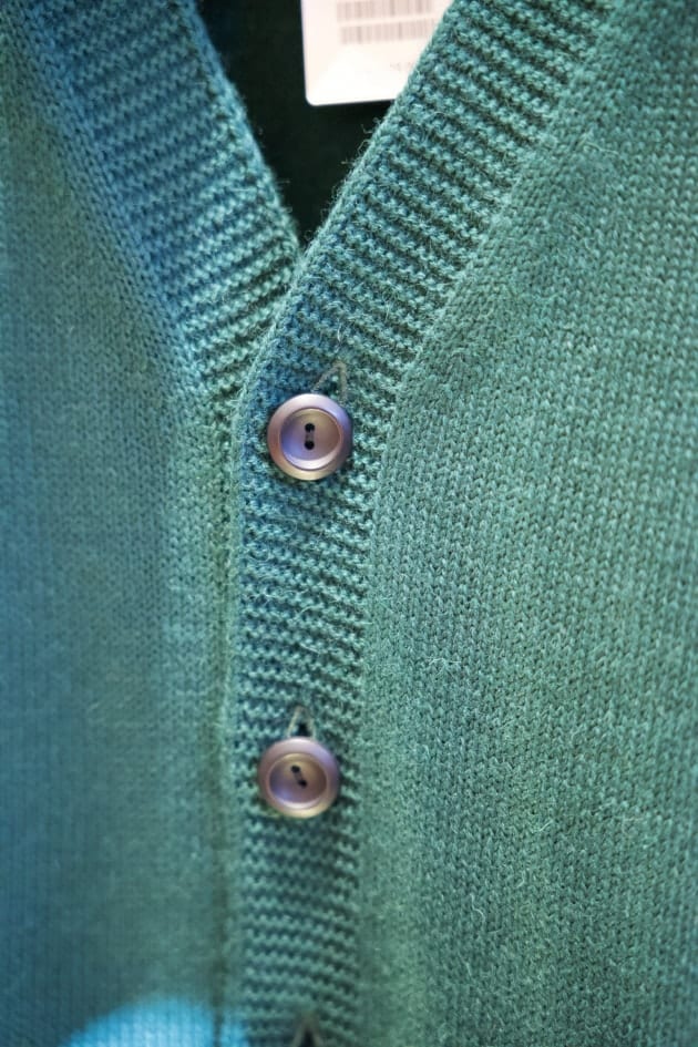 カーディガンがトレンドで色々なブランドが取り扱っていますが、ボタンまでこだわっているブランドは少ない印象です。