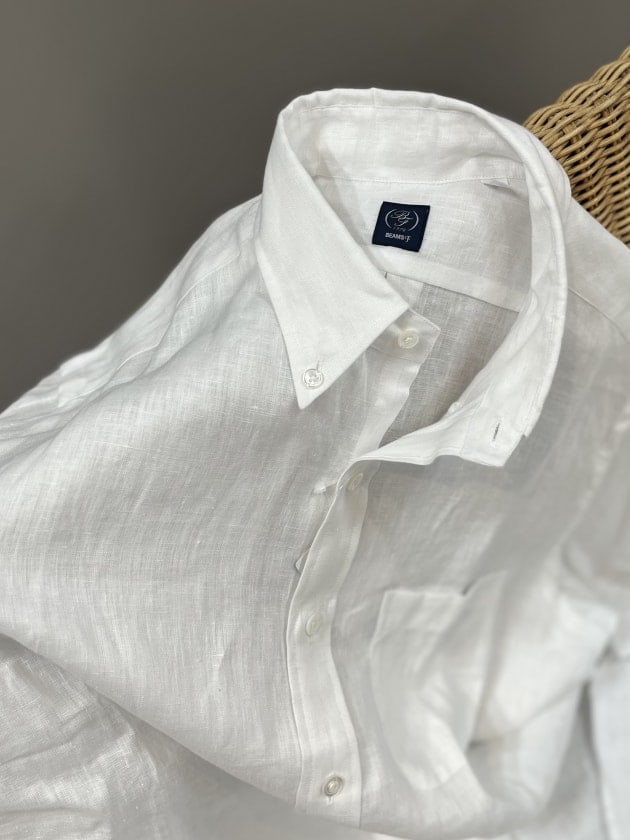 〈BEAMS F〉オリジナルのリネンボタンダウンシャツです。