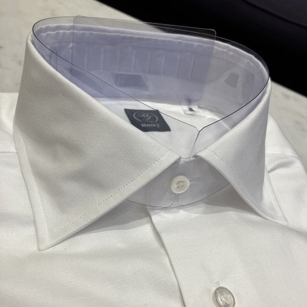 襟のロールが綺麗ですね。程よいリラックス感とドレス感。