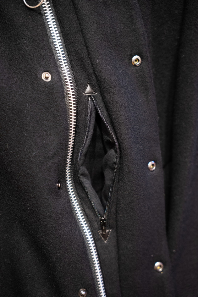 地味なポイントですが、TRANSPORTにはジップと前立ての間にこんなポケットがついています。