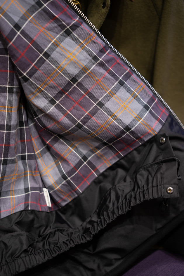 ブラックにはシルバー、オリーブにはゴールド色のジップが使用されています。裏地のハウスチェックも元のモデルと同じですね。