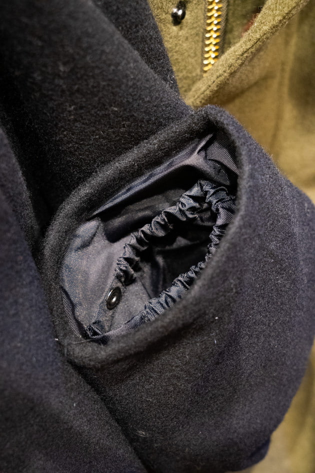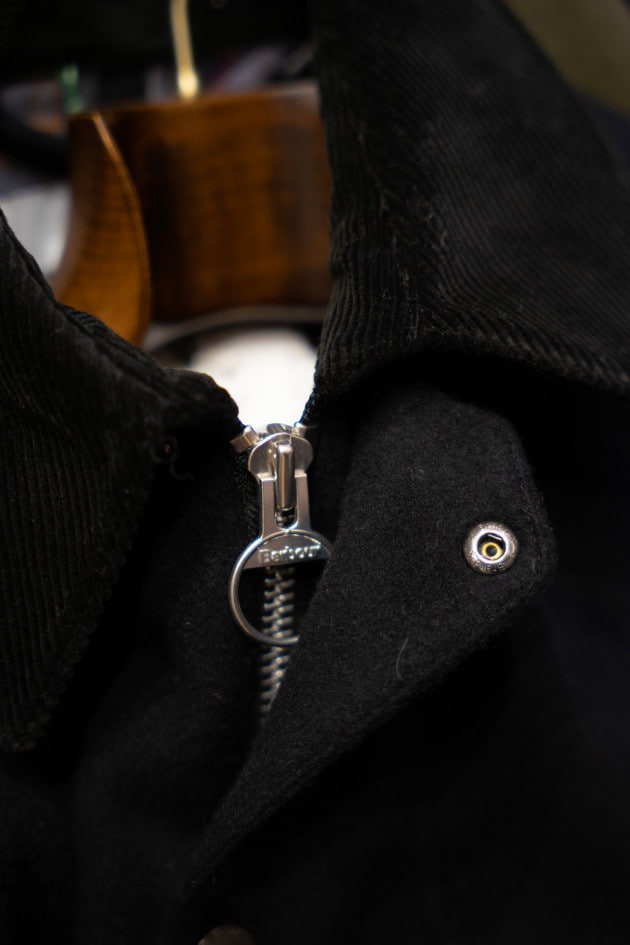 通常オイルドコットンを載せているこちらのモデルですが、ビームスF別注でライトメルトン生地に変更しております。