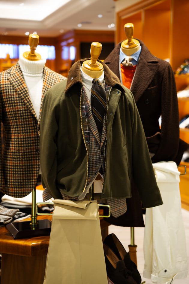 店舗エントランスのトルソーに早速使用しておりました。オーセンティックなオリーブ、扱いやすそうですね。