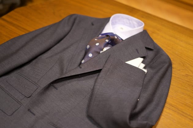 普段から濃いネイビーのストライプシャツを着用しているようでしたらこちらのシャツに置き換えるだけでもVゾーンが新鮮な印象になります。