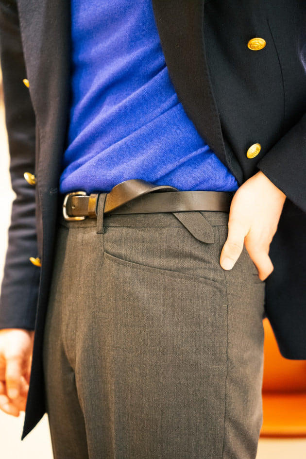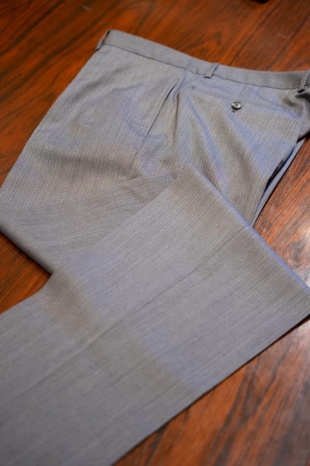 トロピカルウールの様なタッチでこの時期に最適です。特にこちらのBAC Jのようなワイドシルエットのスラックスだと、通気性も良くなるので快適に履いていただけます。