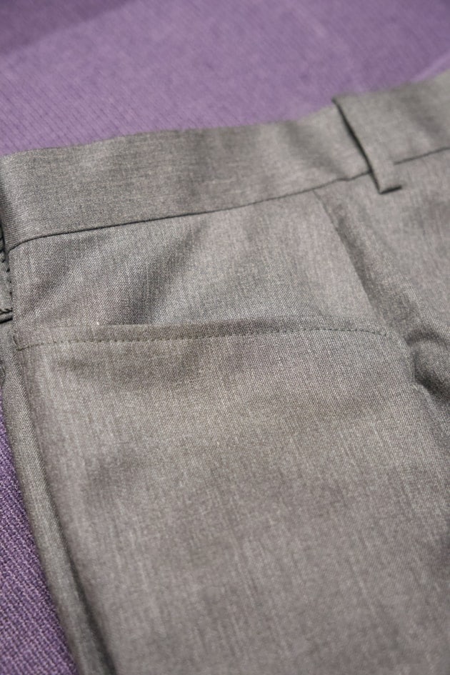素材はウール100%。寄ってよく見ると、細いヘリンボーン織になっています。