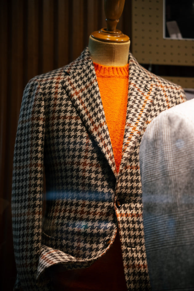 実際、カスタムテーラーの生地にはないような洒落た生地がたくさんあります。こちらもその一つ。