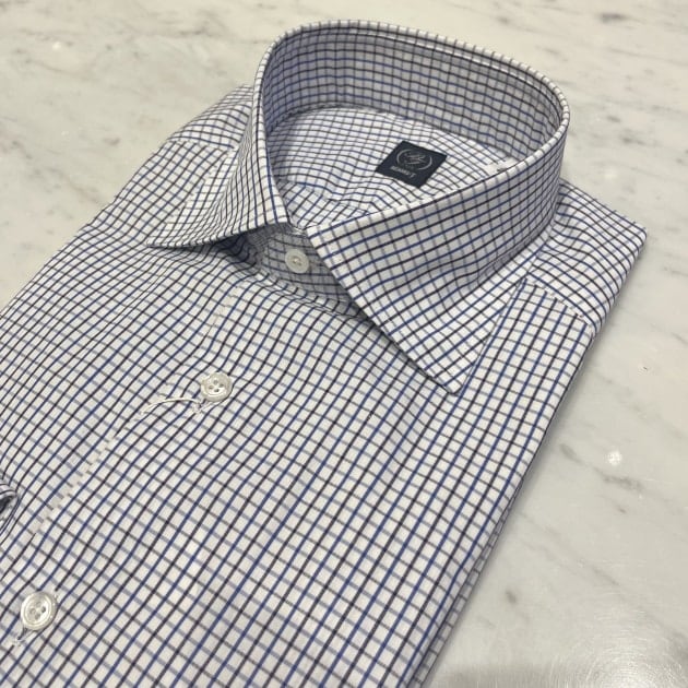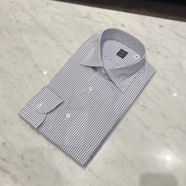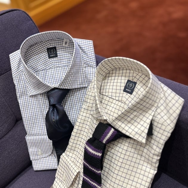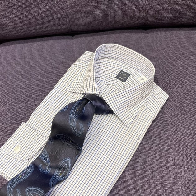ブランドの特徴であるロングポイントの襟がいい雰囲気。