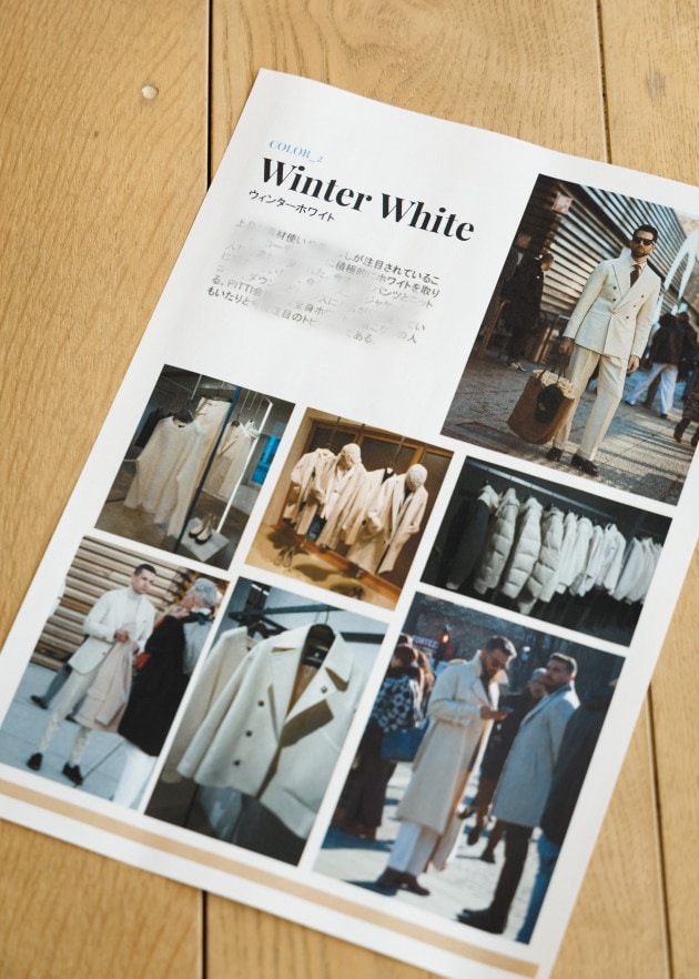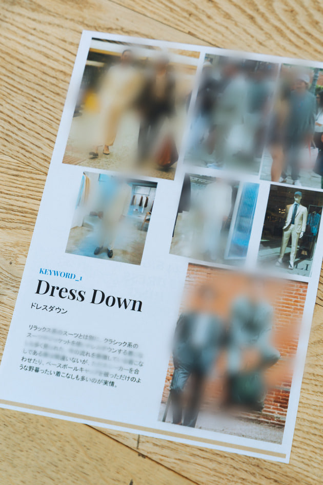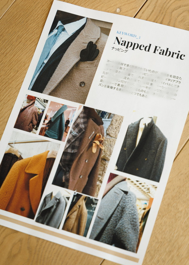 「今回もNAKAMURA NOTEということで、25年秋冬シーズンのメンズドレスクロージングにおける傾向をまとめています。これはあくまでジェネラルな傾向や流れで、ブランドやサプライヤーが実際に打ち出しているものや全体感としての気分、雰囲気を簡単にまとめたものです。あまり構えず聞いていただければと思います。それではアイテムです」