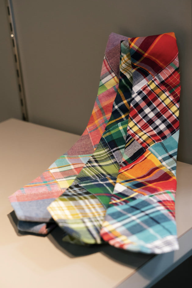 <BEAMS F>オリジナルの<ADAMLEY>のプリント生地を使用したチェックタイ。