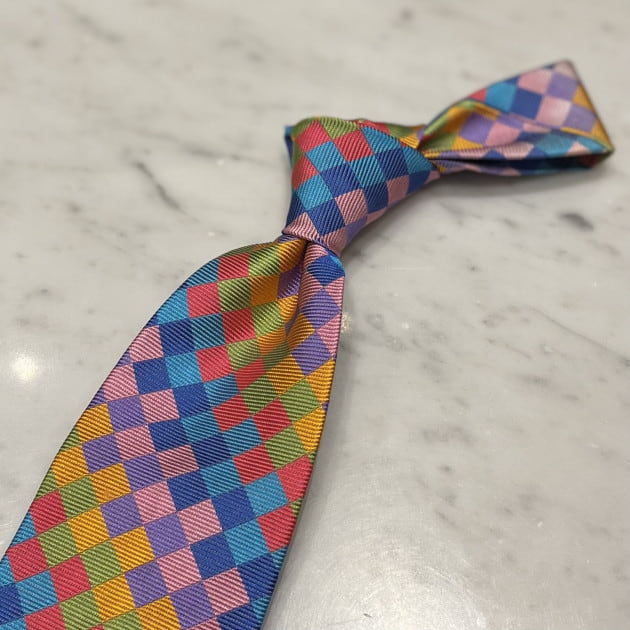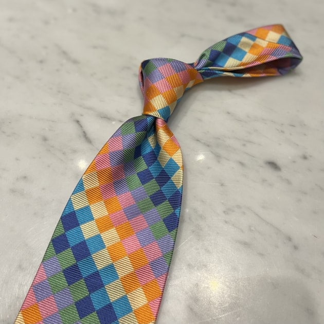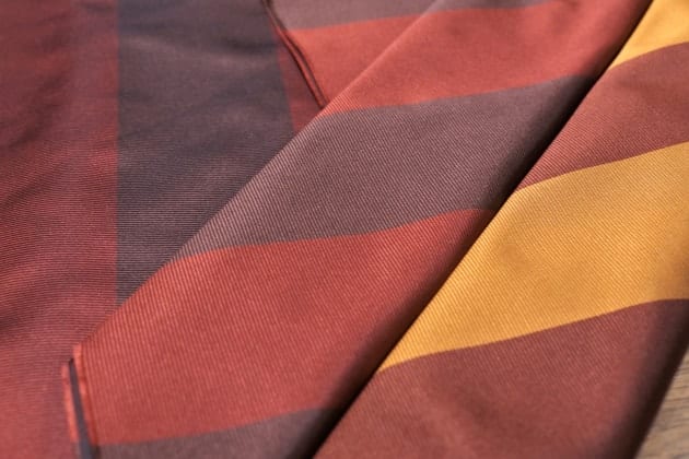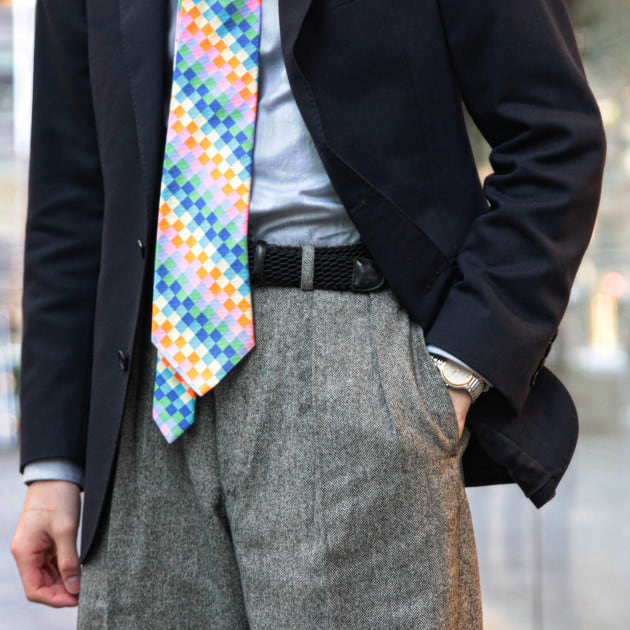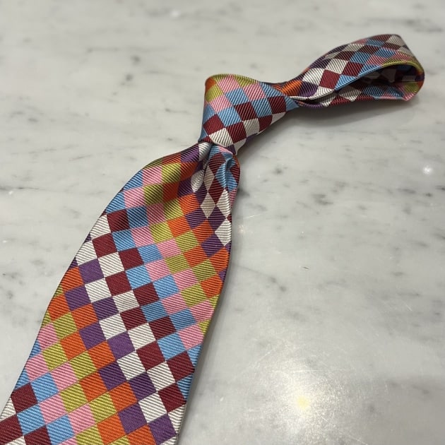 こちらもウールのチェックタイではよくある柄ですが、プリントになるとまた違った印象。ブリティッシュでカントリーな印象が強くなく、コーディネートの許容範囲も広がっているのではないかと思います。