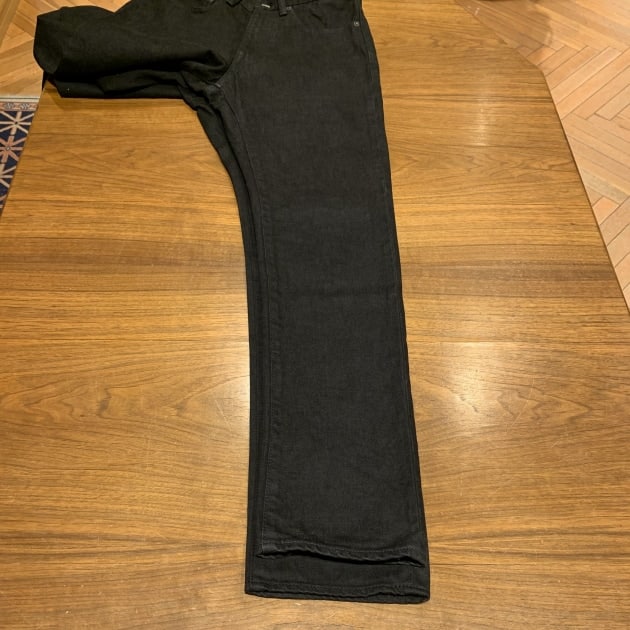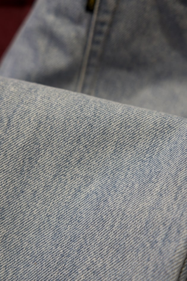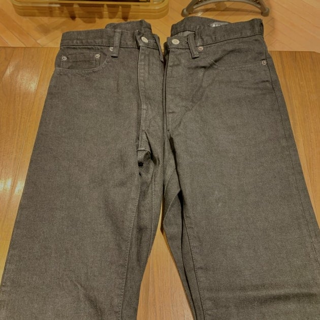 新品のノリ付きのデニムの様な見え方ですが、よくあるコットンのデニムと違い肌触りも柔らかく、高級感ありますね。