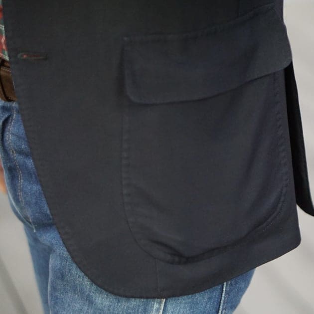 サイズによっては完売、キャンセル待ちにもなっている人気モデル。こちらはリングヂャケット製ですので全体のバランスがオーダーのモデルと異なりますが、ジャケットをフラップポケットではなくパッチポケットにしたいでしたり、パンツをベルトループじゃなくてサイドアジャスターにしたい等、微妙なディテールを変更したり体型補正を入れてよりフィットするものを選びたいという方にもおすすめです。