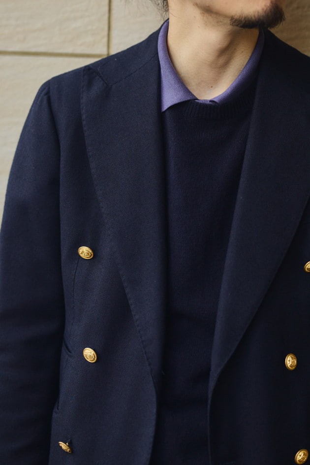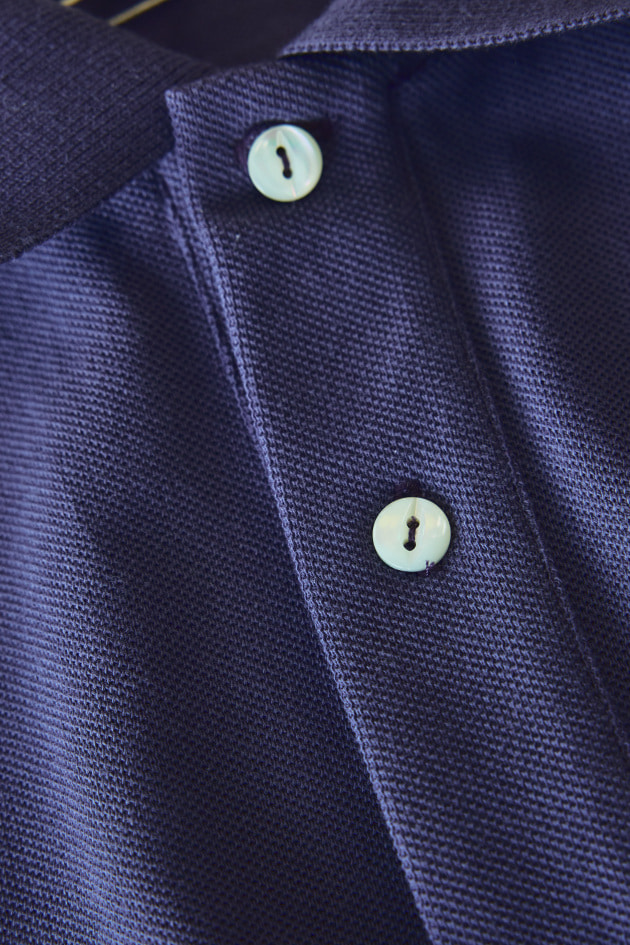 丁寧な縫製や、猫目のボタンなど、細かな部分も綺麗に作り込まれています。ハリがありつつしなやかな、カノコの凹凸感も春夏シーズンに心地良い質感に。