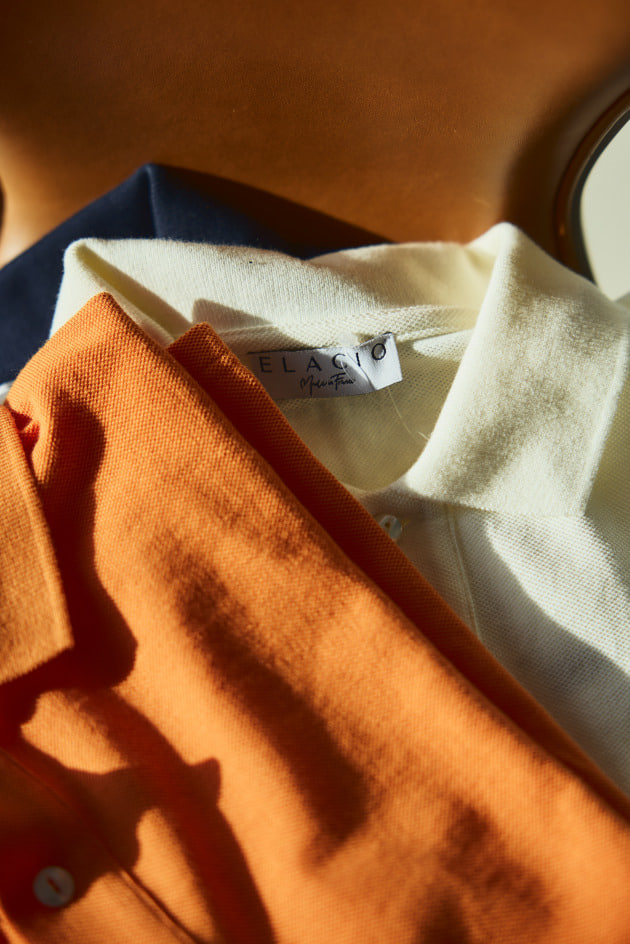 〈ELACIO〉のカノコポロ。ベーシックでありながら、ほんのりと柔らかなニュアンスを含んだ一着は、大人の品あるカジュアルムードを演出するのに間違いないセレクト。直球のトラッドに入れて柔らかくするもよし、フレンチなムードをいっそう愉しむのもよし。様々なこなしを品良く、大人らしく見せてくれます。ぜひご検討の際はお早めに。