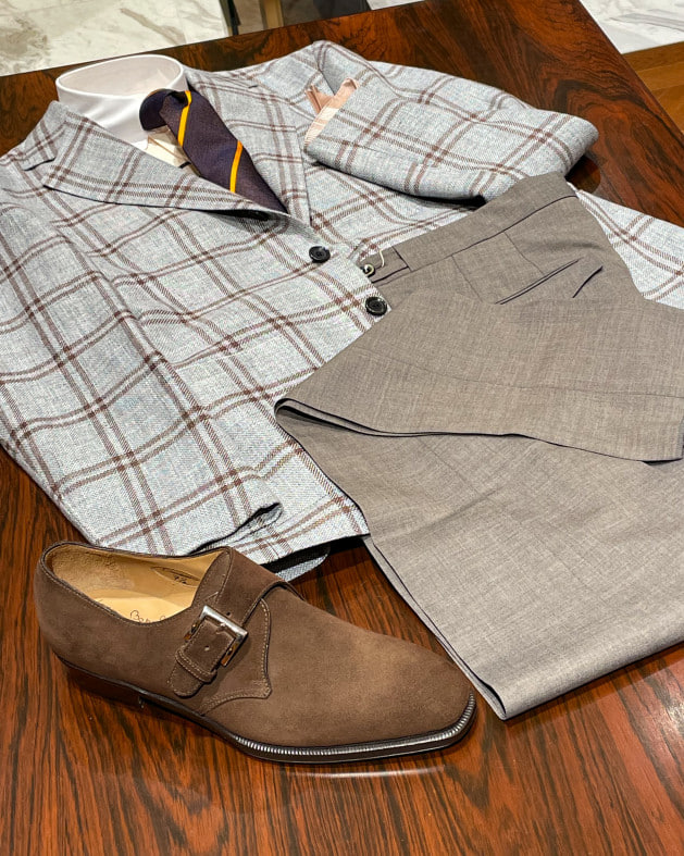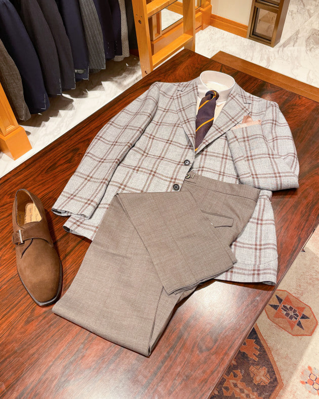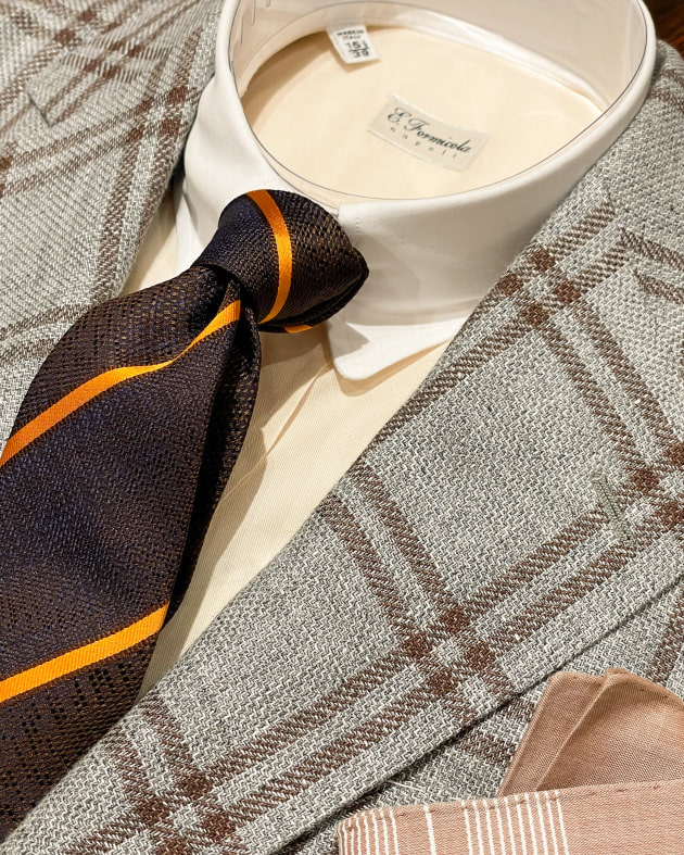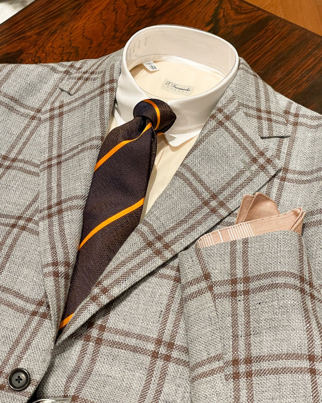 Seaward & Stearn / シルクリネン チェック柄 プリント ネクタイ