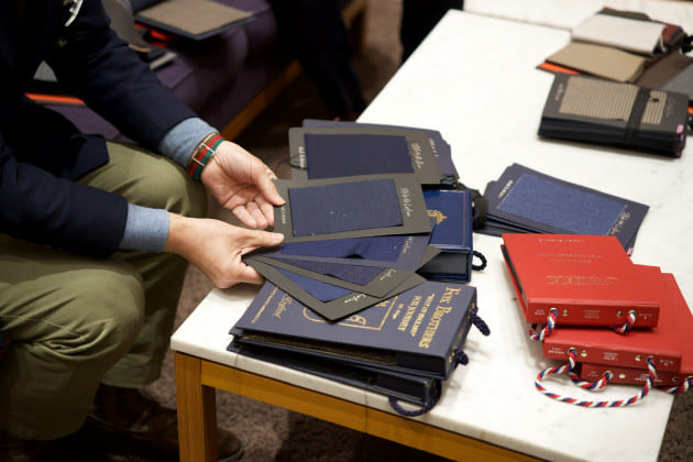 今回のおすすめは今までの<Stile Latino>オーダー会では見たことのなかったこちらの<DORMEUIL>の生地ブックから。
