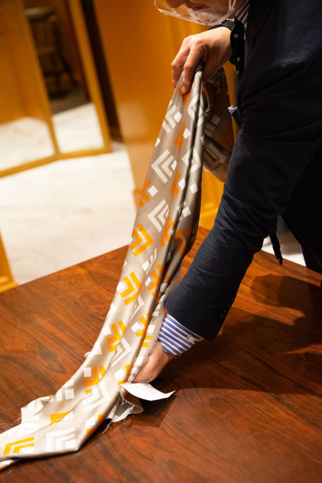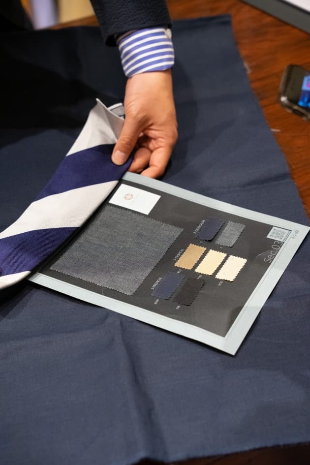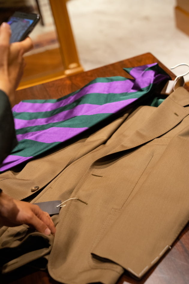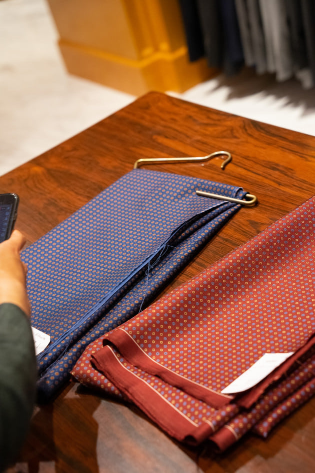 先日はオーダー会に合わせて変更されたウインドウディスプレイを紹介しました。オーダー初日の本日は、個人的におすすめの生地の紹介いたします。