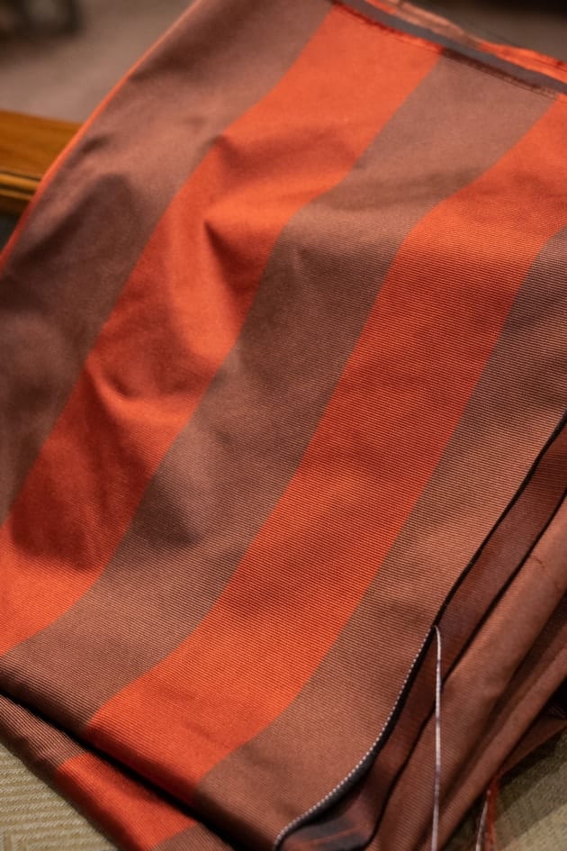 重さは260〜280gと比較的軽めで春夏秋の3シーズンといったところでしょうか。最近合物をオーダーでよく仕立てているのですが、この生地も長いシーズン活躍してくれそうです。