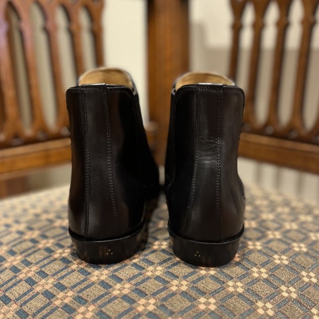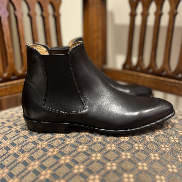ゴアブーツと聞くとややスポーティな印象のシューズですが、こちらはスーツスタイルにも間違いなく合うドレッシーな仕上がりですね。
