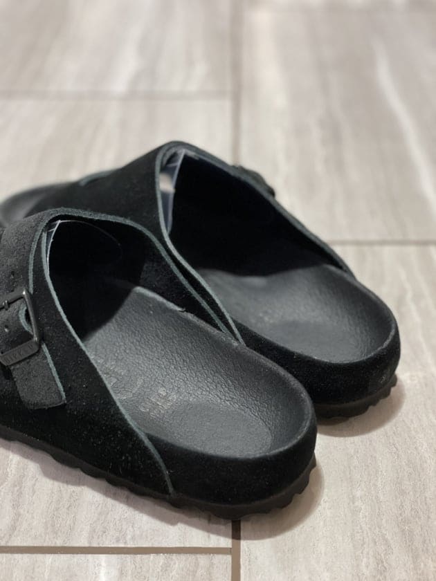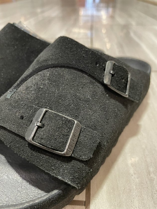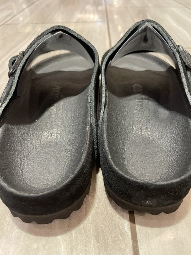 アッパーの柔らかいベロアレザーが、優しく足にフィットし、ストラップには厚みのあるオイルドレザーを採用することで足馴染みが良く、経年変化も楽しめる一足に仕上がっています◎